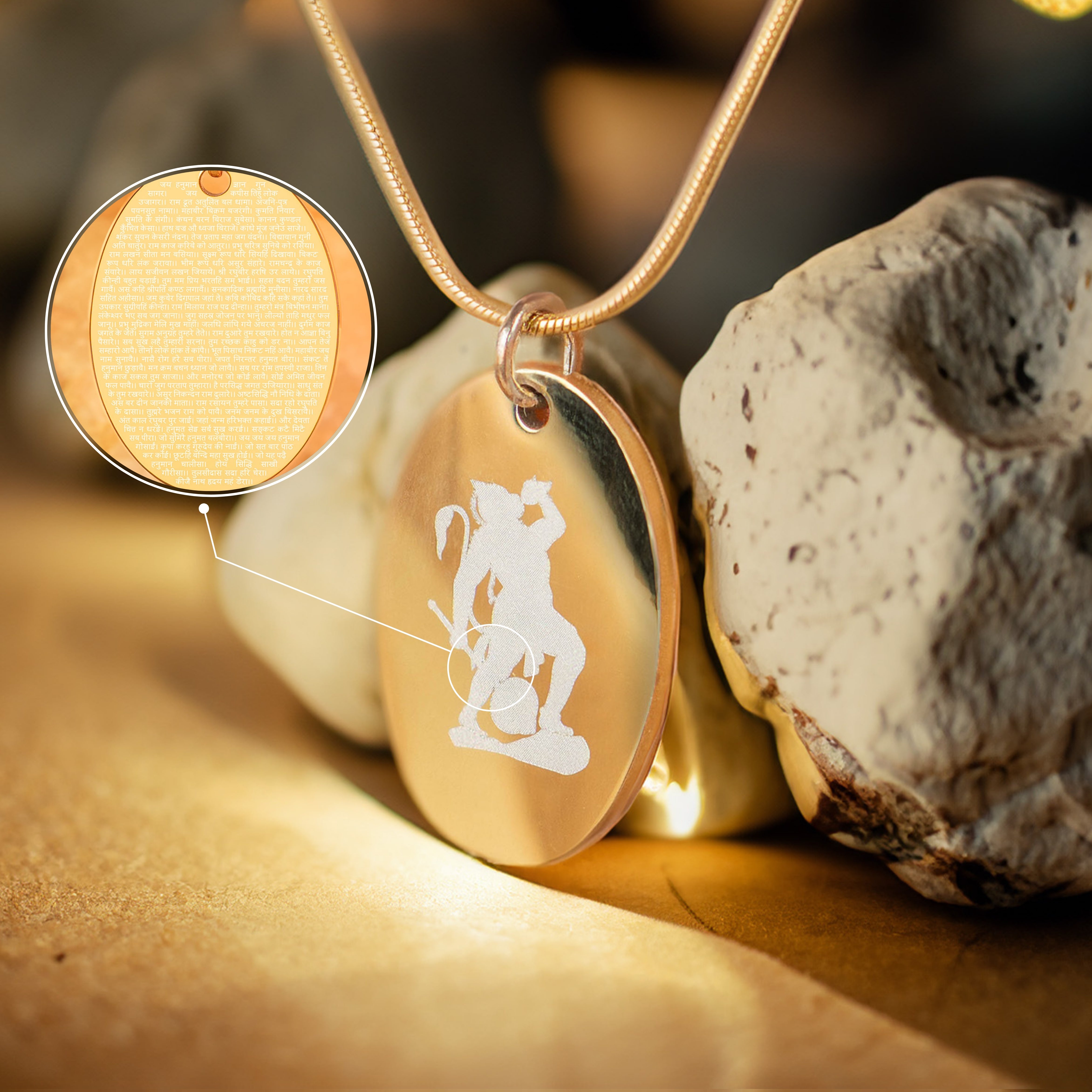 MicroCarved Hanuman Chalisa Reversible Oval Necklace