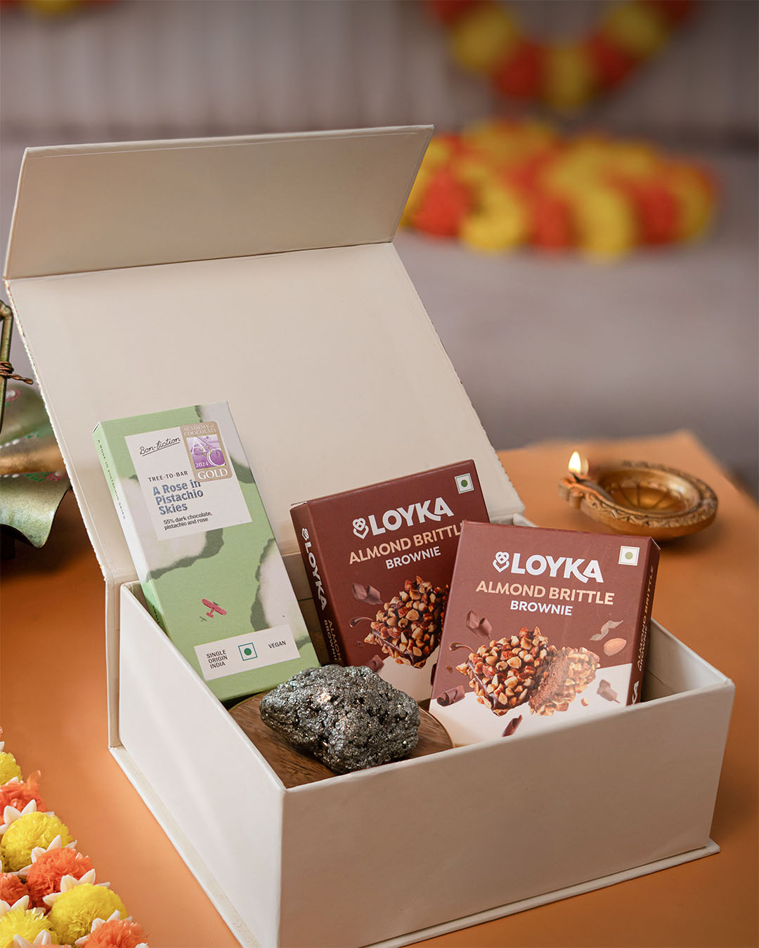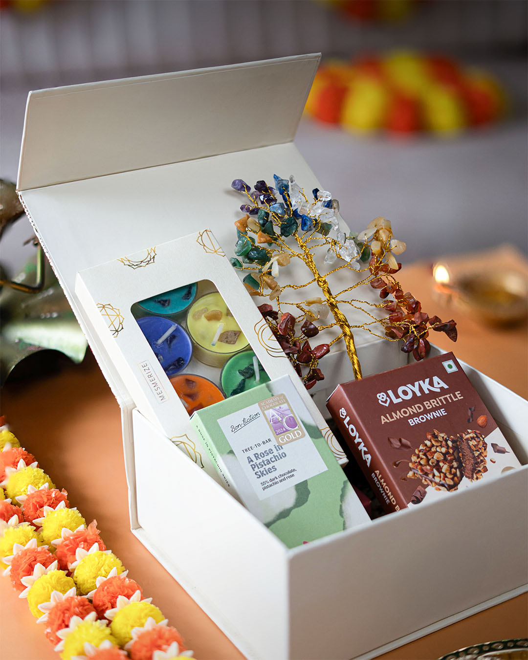 Buy Mesmerize hampers in bulk and make every occasion special. Enjoy exclusive deals: buy 5 and get2 0% off, buy 10 and get 30% off. Thoughtfully curated with natural stones, artisan chocolates, and symbolic trees, these hampers are perfect for clients, employees, and partners.