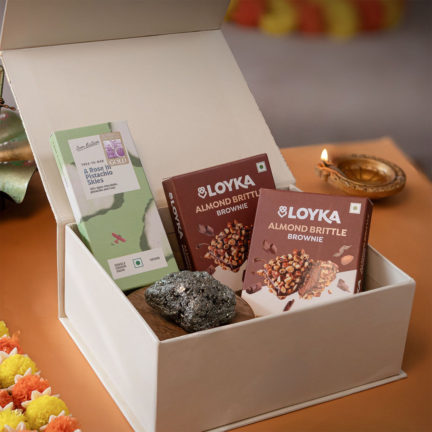This Diwali, discover our Natural Stone Hampers-each featuring a distinct natural stone product like curated raw crystals, stone pens, and symbolic trees, blending beauty, positivity, and meaning in every gift."