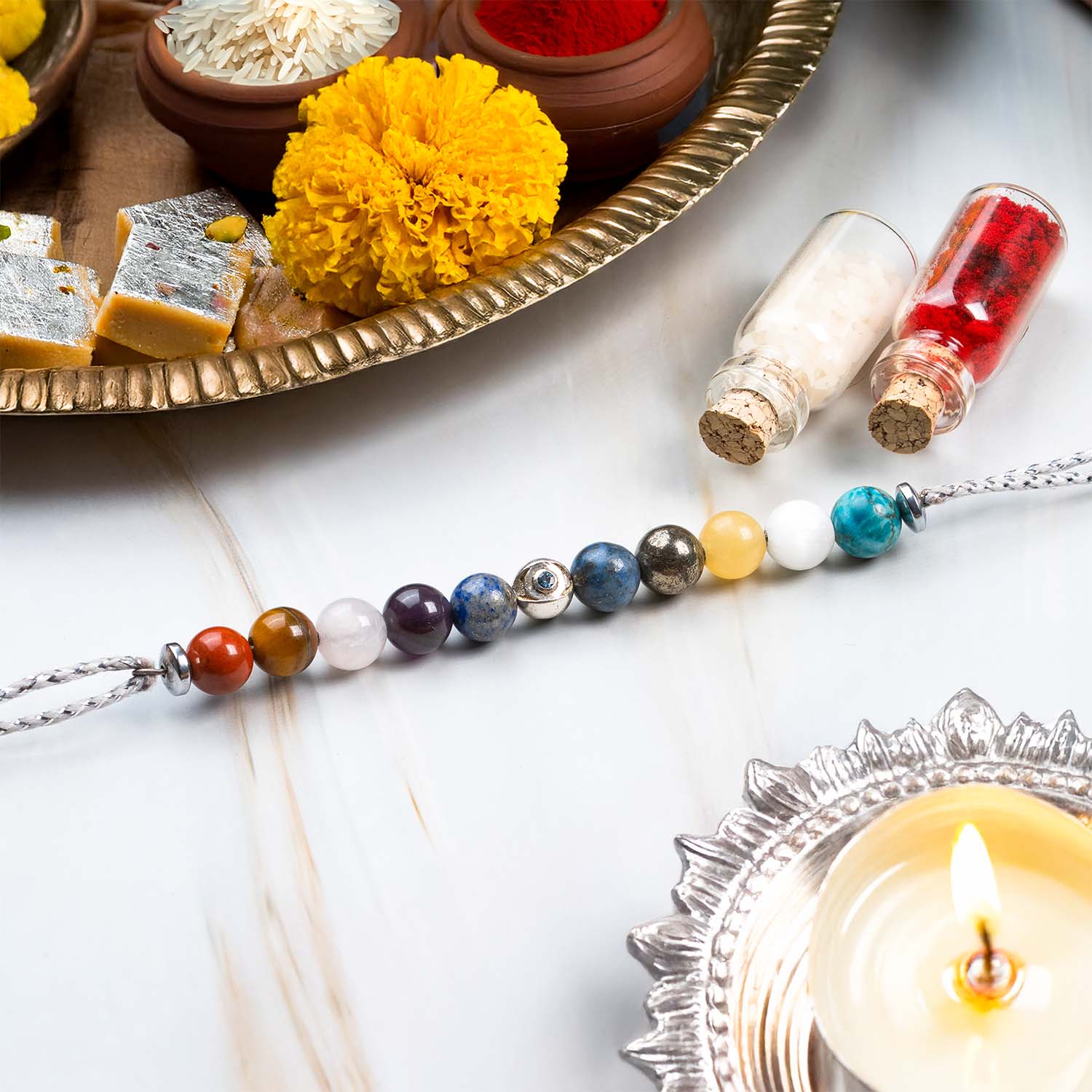Each Rakhi is handmade from 100% Original Stone. Each Rakhi has unique healing properties