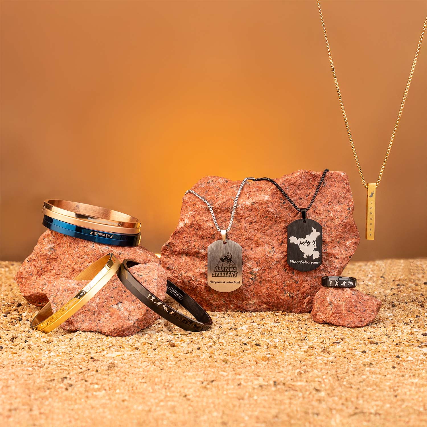 Discover oursleek designs inspired by Kabaddi, combining bold aesthetics with the spirit of the game. Each piece in this collection, including necklaces, bracelets, and rings, reflects the strength and energy of Kabaddi, making them perfect for fans who want to showcase their love for the team