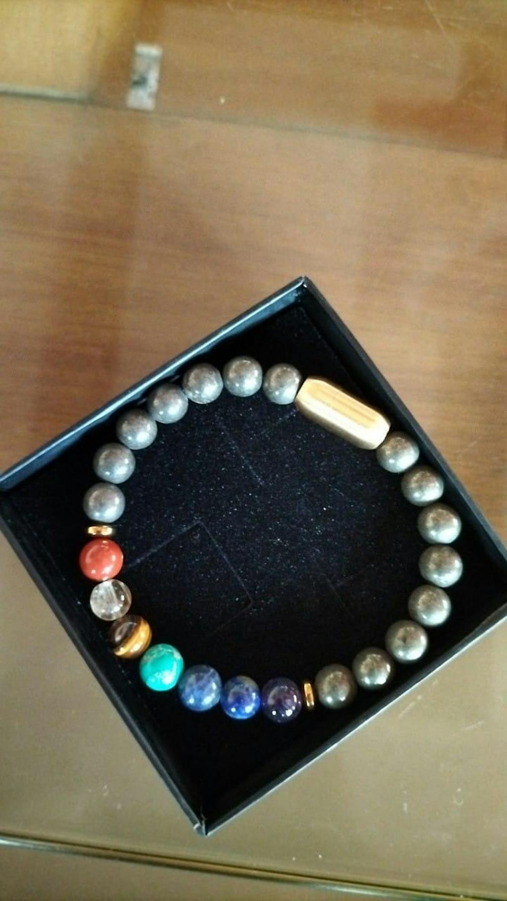 About Money Magnet Pyrite 7 Chakra Natural Stone Bracelet