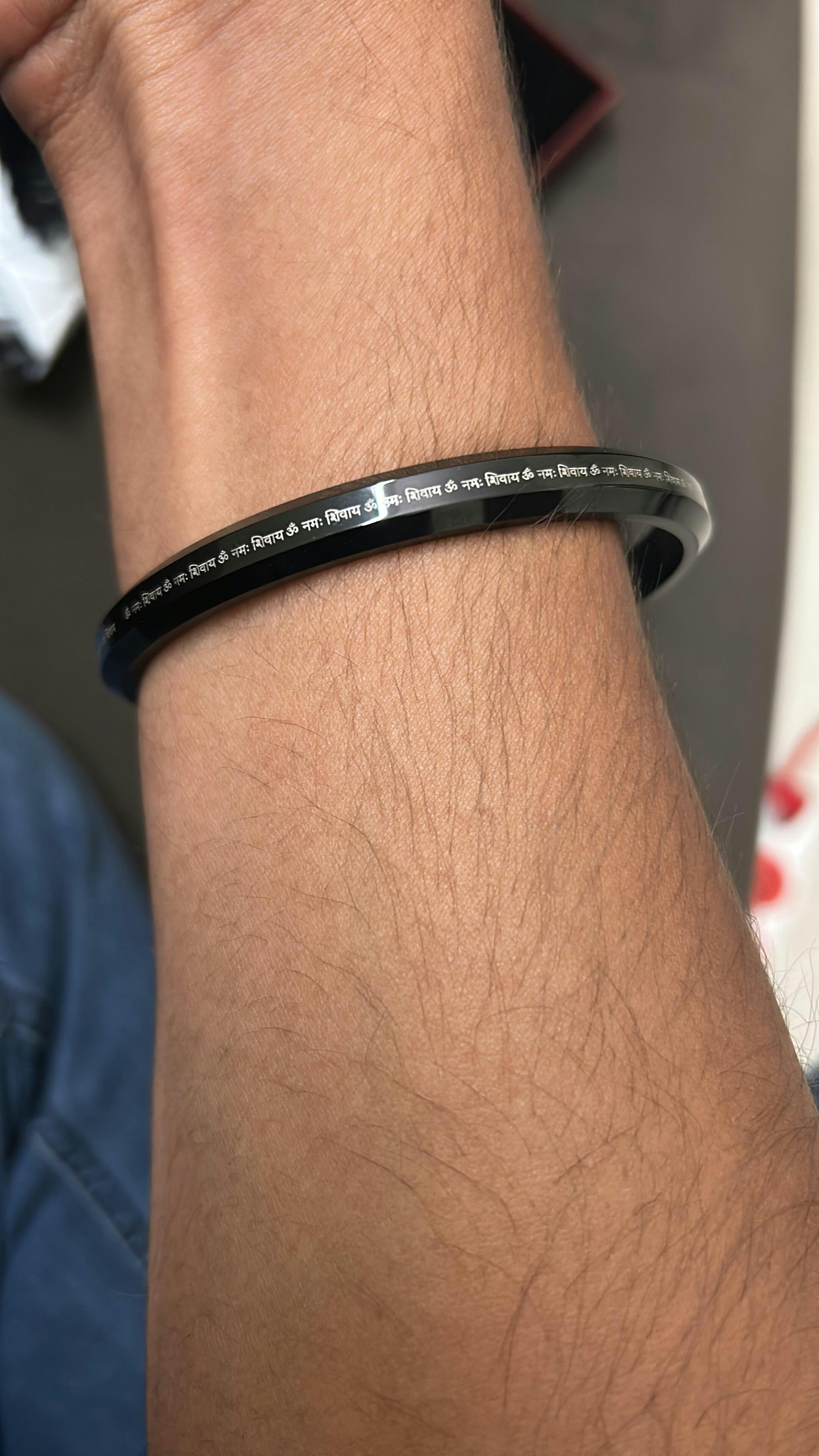 - Gloss bracelet for men in a round flat Kada style featuring the Om Namah Shivay design.