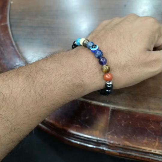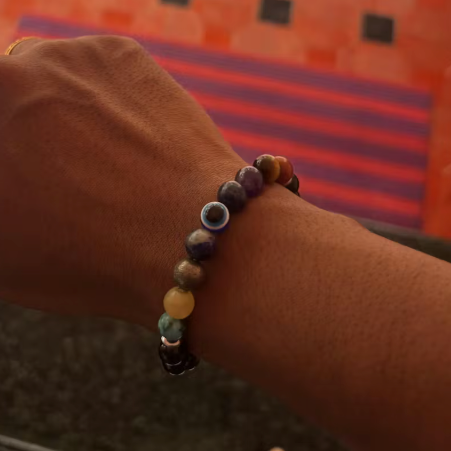 Unique 9 Chakra Bracelet - Power of 7 Chakra + Pyrite (Money Magnet) + Evil Eye (Nazar)