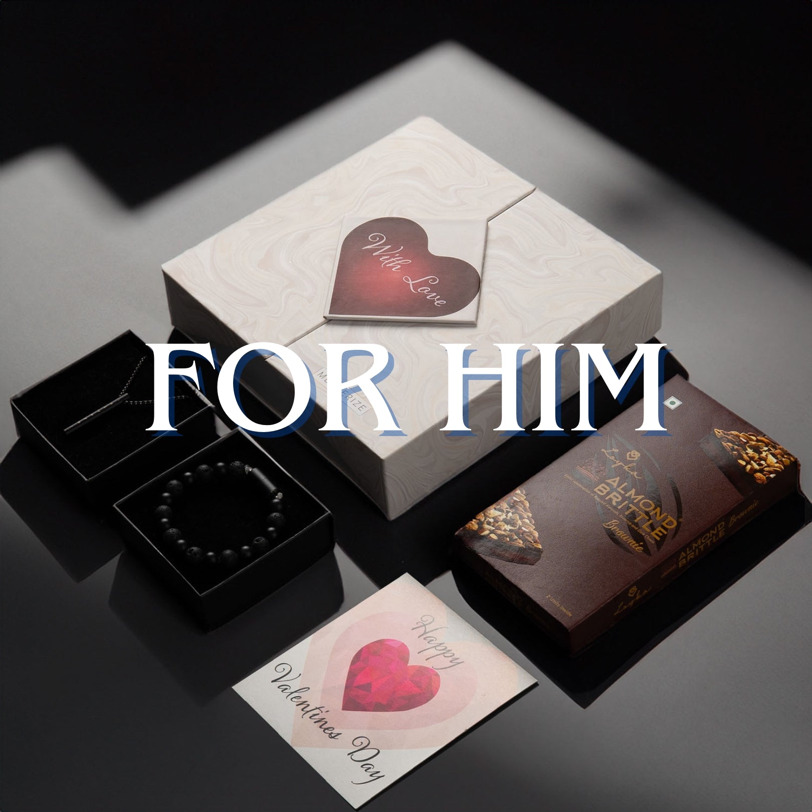 - Our premium Valentine's Hamper for Him features Premium Stainless Steel Kada Bracelets, Necklaces and Rings along with The Whole Truth Cocoa Cranberry Fudge, Loyka Almond Brittle Brownie, Pascati Orange Cinnamon Hazelnut Vegan Chocolate Bar which is put together in a 'With Love' Magnetic Hamper Box.